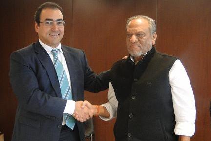 Ministro de Comercio, Industria y Turismo de Colombia, Sergio Díaz-Granados (izq.), y el Ministro de Minas de la India, Dinsha J. Patel.