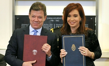 Al término de la reunión con su homóloga de ese país, Cristina Fernández, en la ciudad de Buenos Aires, el Jefe de Estado recordó que “hace más de 10 años no venía un Presidente colombiano a Argentina”, en visita oficial.