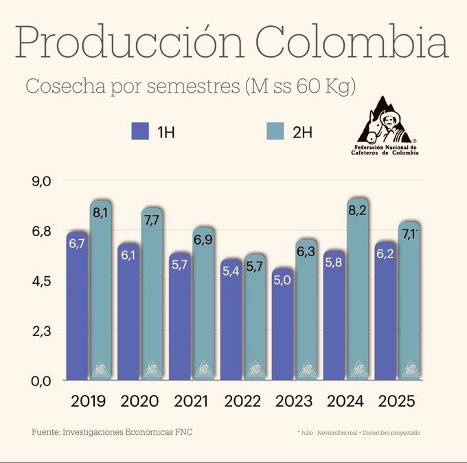 Germán Bahamón, gerente general de la FNC, presentó los datos en Bogotá y no se sorprendió: «La fotografía de noviembre arma el rompecabezas que veníamos viendo desde octubre». El semestre julio-diciembre acumulará unos 7,1 millones de sacos, un 12 % menos que el año pasado, alineado con proyecciones técnicas basadas en mediciones de más de 2.000 fincas. Las lluvias torrenciales de principios de 2025 afectaron la polinización y el desarrollo de los frutos, un fenómeno que toca de lleno el ciclo bienal del cafeto: tras un año récord como el 2024-2025 (14,8 millones de sacos, el máximo en 33 años), el cultivo «descansa» naturalmente.